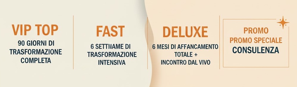 Tutti e tre includono il mio affiancamento personale, ma con livelli di intensità, durata e bonus diversi.