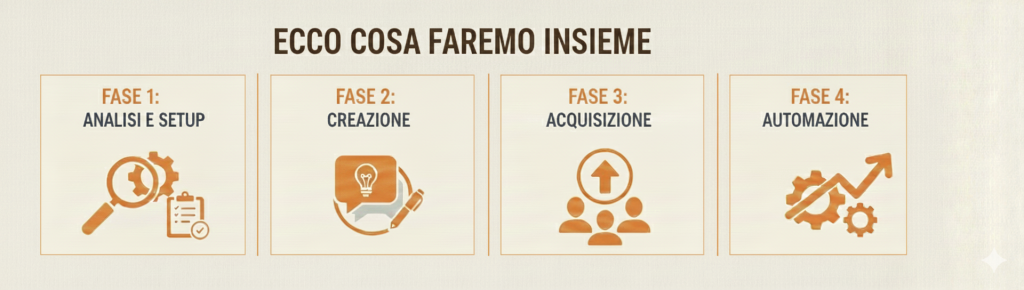 • 3 mesi di affiancamento passo passo: non sei mai solo. Costruiamo insieme la tua attività online da zero fino al lancio.