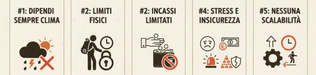 Sei ancora lì. Stessa routine. Stesso freddo. Stessi problemi. Magari guadagni qualcosa in più a Natale… ma poi torna tutto come prima. Tra 5 anni, sarai sempre nello stesso posto. Più stanco. Più frustrato.